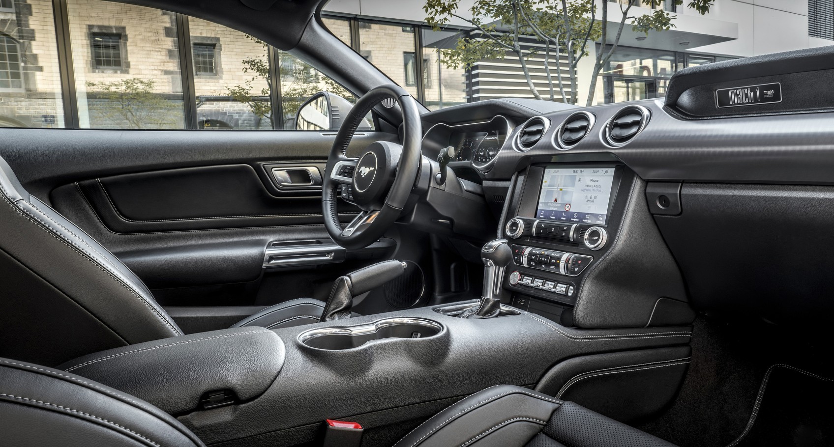 Inside, the 2027 Mach 1 maintains its performance-driven ethos while integrating advanced digital technology and premium materials. The cabin features a driver-focused cockpit, complete with a 12.4-inch digital cluster and a 13.2-inch SYNC 4 infotainment display angled toward the driver. Ford has redesigned the seats with improved bolstering, available in Recaro leather-trimmed or Alcantara sport options. The flat-bottom steering wheel is wrapped in suede-like material and includes programmable drive mode controls for quick access. Metal pedals, contrast stitching, and special Mach 1 badging further emphasize the car’s sporty DNA. Ambient lighting, dual-zone climate control, and wireless smartphone integration ensure the cabin is as comfortable as it is capable.